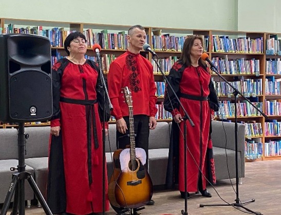 26 березня в обласній книгозбірні відбувся теплий і натхненний творчий вечір за участі вокального тріо «Оксамит», учасниками якого є члени мистецького колективу Вінницької ТПО УТОС Наталя Слюсарчук, Валерій Гаврилюк та Ірина Костюник. Захід подарував присутнім атмосферу щирості, душевності та справжнього мистецтва. У виконанні тріо прозвучали проникливі вокальні композиції, які торкнулися сердець слухачів і створили особливий емоційний настрій. Слухачами концерту були члени УТОС, працівники бібліотеки, представники громадських та творчих спілок міста над Бугом. До слова, тріо «Оксамит» працює вже шість років, бере участь у різноманітних заходах, організованих ТПО УТОС, на заходах міського та обласного рівня. До свого репертуару включає різнопланові композиції, що виконуються під гітару чи акапельно.